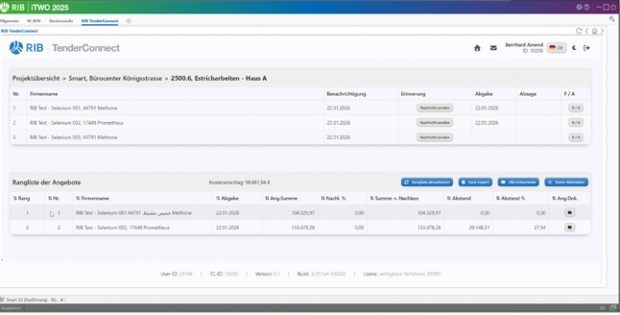 RIB TenderConnect für digitalen Ausschreibungs- und Vergabeprozess